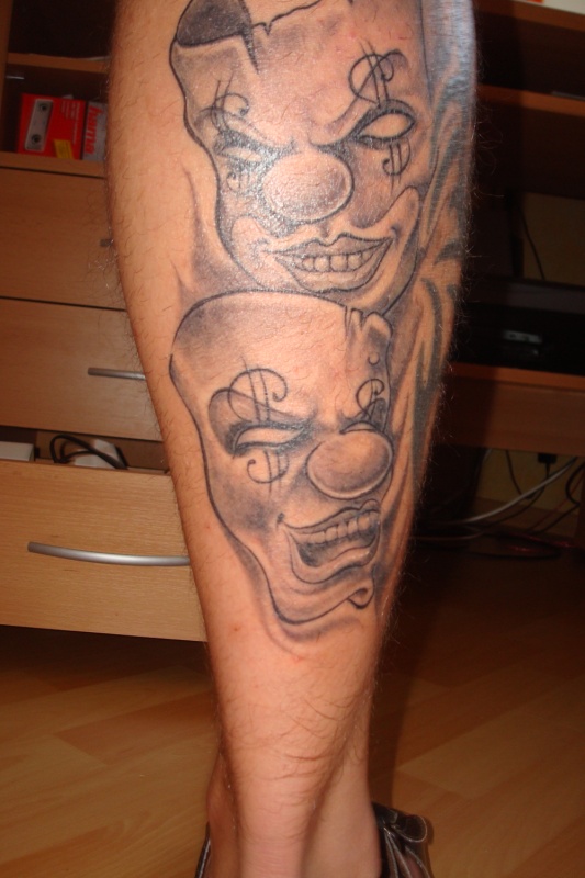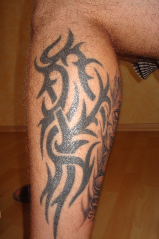 bin neu hier und nutze diesen post gleich mal mit als vorstellung. also bin 26 jahre und habe 2 tattoos auf dem rechten unterschenkel. auf der außenseite ein Tribal was mittlerweile acht jahre alt ist und auf der der wade ein "smile now, cry later" was erst vor ca 3 wochen gestochen wurde. ich würde jetzt gern noch die innenseite tätowieren lassen, allerdings habe ich noch kein passendes Motiv. vom stil her sollte es zu den Masken passen und dort ein übergang entstehen. hat vielleicht jemand ne idee wie ich das Tribal auch noch besser ins gesamtbild integrieren kann ohne es covern zu lassen?