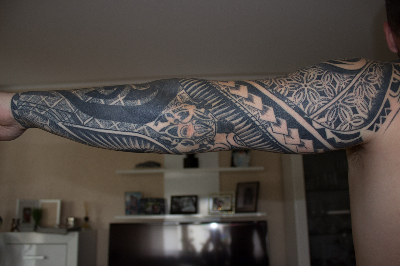 meiner Tättowierung heran wagen würde. Ich habe in diesem Moment leider mein Vertrauen komplett in die Hände eines Tättowieres gelegt und naja, was soll ich sagen, seht selbst. Vorweg sei gesagt, bitte erspart mir sämtliche Kommentare wie..... warum bist du da geblieben oder was hast du dir dabei gedacht ?. Ich habe schlicht und ergreifend Vertraut, vertraut das derjenige Ahnung hat und weiß was er tut. Das Ende war leider ein vollkommen wild zusammen gewürfeltes Tattoo das mal ein Maori werden sollte.