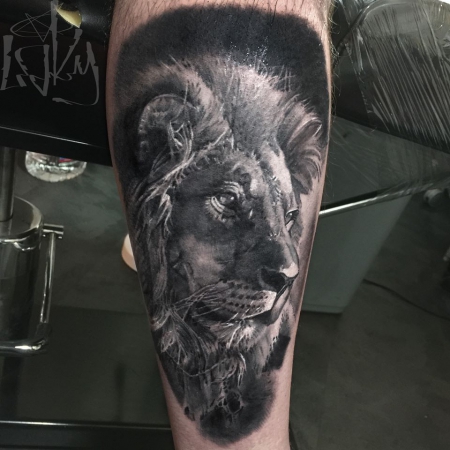 Ich bin der tätowierer die erste Sitzung hat 6 Std gedauert und in der nächsten Sitzung werde ich noch den oberen Hintergrund ausarbeiten und die mähne Zähne noch detailieren hoffe es gefällt euch ...