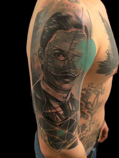 2 Sitzungen á 5 & 8 Stunden. Feder auf der Schulter vom alten Tattoo wird noch fransiger und dunkler nachgestochen. Verbindung zum Innenarm auf der Rückseite (Trizeps) ist auch geplant, desweiteren kommt noch ein Kreis neben dem anderen richtu ...