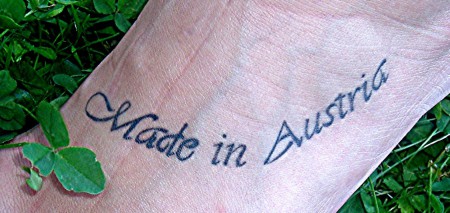 etwas patriotisch veranlagt ... wollte es als erstes auf der Ferse (is nur für mich) wie eine Puppe Made in China stehen hat .. aber mein Tattoowierer meinte ich solls woanders machen - das hält sich nicht bzw. wird einfach verwischt! Kosten ...