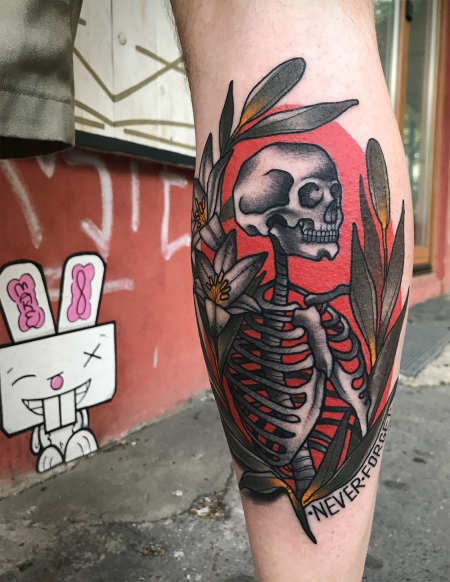 Das ist meine - leider bereits verstorbene - Französische Bulldogge Sheila. Ich habe Sie mir als Erinnerung auf die Innenseite des rechten Oberarms stechen lassen. Gemacht wurde das Tattoo von Razvan Popescu und hat ca. 4,5 Stunden gedauert. Die ...