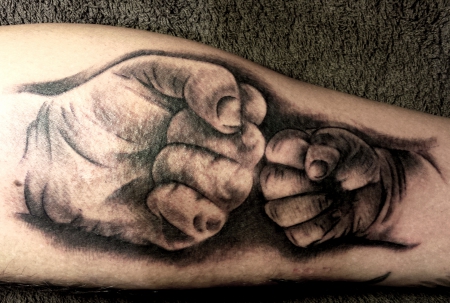 Mein erstes Tattop. Vor 2 Stunden gestochen bekommen. Es ist ein Tattoo zu ehren meines verstorbenen Patenonkels. Ist ein Spruch aus der Bibel (Psalm 139:5) und bedeutet, "Von allen Seiten umgibst du mich und hälst deine Hand über mir." T ...