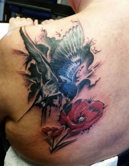 Motiv: neu interpretiert " Vogel mit Blume" Kosten: 350 Euro Schmerzen: Na ja, ich könnte mir etwas schöneres vorstellen Dauer: ca. 3 1/2 Stunden Das ist mein neues Tattoo. Kaum zu glauben, aber es ist ein Cover-Up. Ich bin meinem Tätowi ...