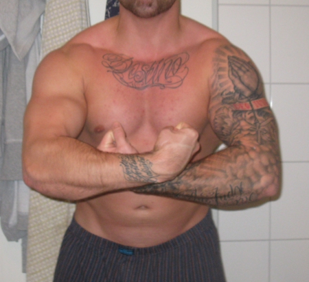 Ich stehe ja mehr auf den natürlichen Typ Mann mit Airbag statt Sixpack...nu ja, hoffe, die Tattoos bleiben so schön, wenn sich der Umfang mal reduziert. Dein rechter Arm könnte noch was Tinte vertragen :-)