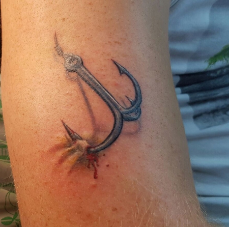 Ich war in der Schule immer schlecht in Physik, aber der Schatten wirkt auf mich nicht korrekt. Ich finde den Angelhaken zudem ein bisschen asymmetrisch.
