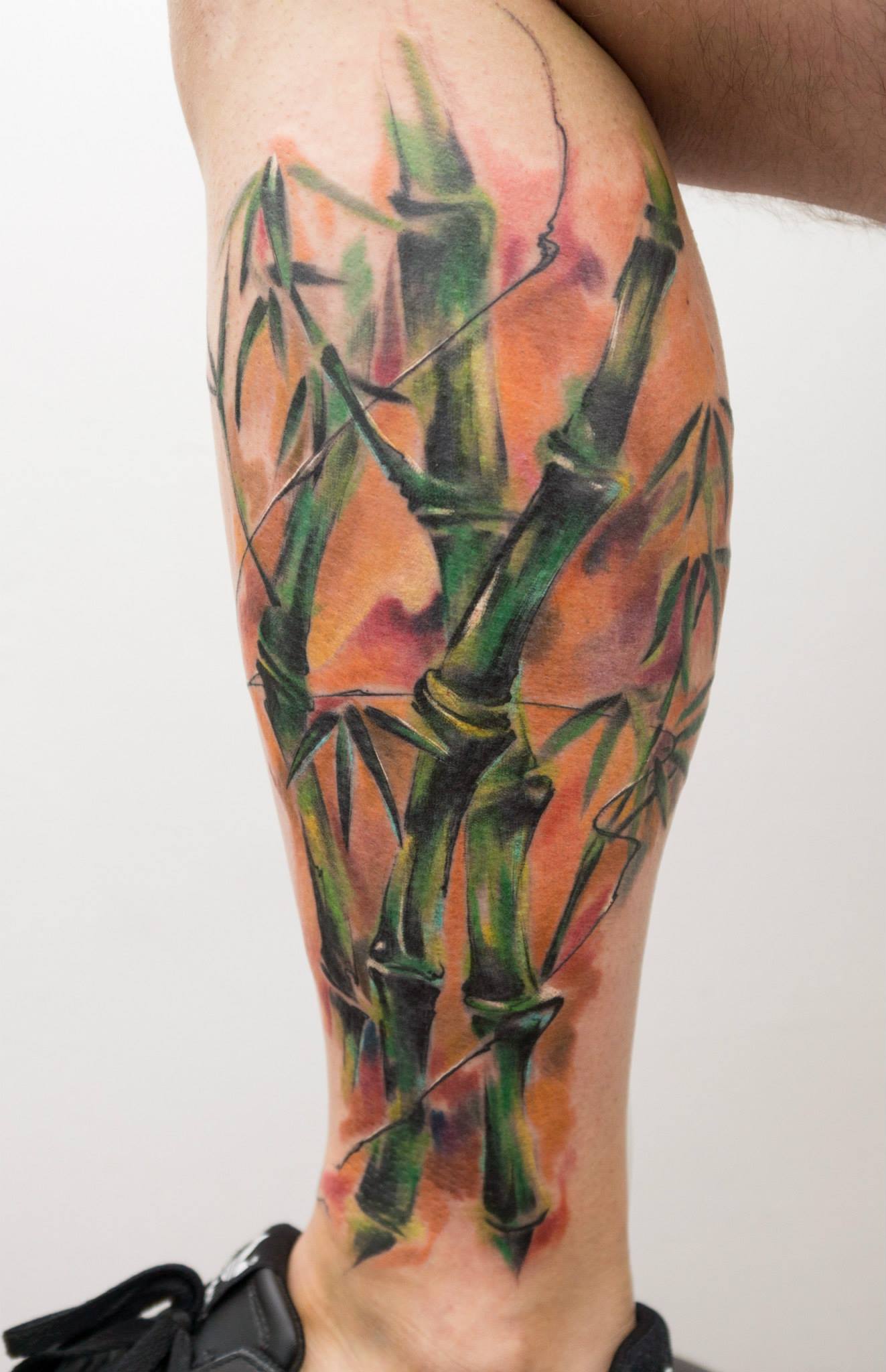 Ich bin ein großer Fan des Bambus - Motivs. Wobei ich die schwarze Variante vorgezogen hätte. Alles persönliche Geschmackssache. Ich kann nicht beurteilen, ob es gut gestochen ist - aber das Tatoo ist für mich nicht "rund", obwohl die Bambusstängel und die -blätter ganz gut getroffen sind. (Auf Papier würde ich noch mehr Abstufungen in der Farbsättigung bei den Blättern versuchen reinzubringen). Sowohl nach unten als auch nach oben bleibt es im Diffusen. Möglicherweise seh ich alles ganz falsch und bei einem Tattoo muss das gar nicht sein?