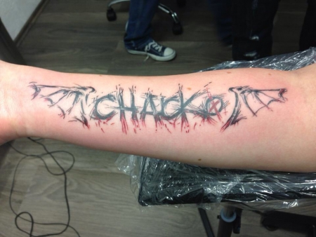 Ich stehe auf etwas ausgefallenere und düstere Schriftarten und das Rot symbolisiert für mich die Blutsbindung :)