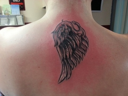 ob ein oder zwei flügel, egal. einfallslos und unüberlegt. einfach drauf auf die haut. tattoo ohne jegliche fantasie.
