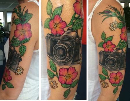 Die Outlines & die Kamera wurden vor 3 Wochen gestochen - Blumen wurden vor 4 Tagen ausgemalt. Ich hoffe man kann es auf den Bildern ganz gut erkennen. Bin gespannt auf Meinungen - ich finde es natürlich schön, sonst hätte ich es ja nicht machen lassen :) Aber die objektive Meinung anderer finde ich sehr interessant. Lieben Dank schon mal :)