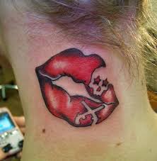 Der Kussmund habe ich mir mit meiner Schwester stechen lassen, ich habe es in der Armbeuge und meine Schwester in der Kniekehle :-).