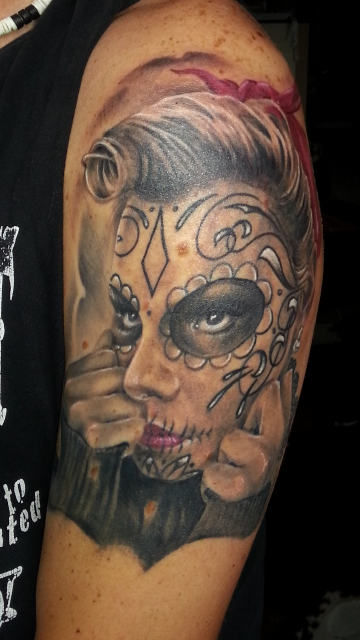 Auf die Punkte kommt es glaube ich gar nicht an, für mich ist das eine ausdrucksstarke "La Catrina", die deine Frau bedrückt und schwermütig zeigt. Als Tattoo funktioniert es eindrucksvoll und es ist auch in guter Qualität. Du lässt uns an deiner/ihrer Geschichte teilhaben, dafür danke ich dir und wünsche euch alles Gute nochmals.