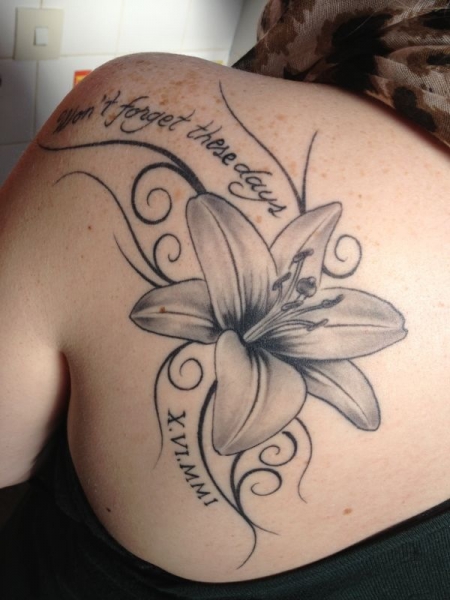 Blume 10 Punkte aber ich finde die Schnörkel und der Schriftstil passen nicht zur Lilie