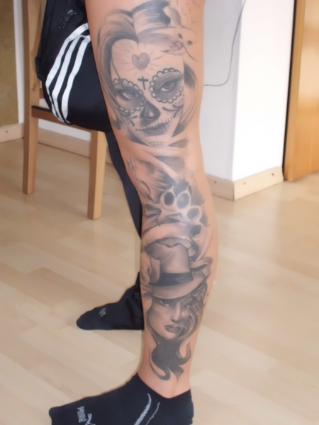 oder sowas vorgestellt, aber wir sind zu unserem Tättowierer hin und ich hab gesagt "Mach was schönes draus, lass deinen Gedanken freien Lauf" und er hat dann losgelegt, mehr oder weniger "Frei-Hand". Und ich bin mehr als zufrieden mit dem Ergebnis:-) Es ist aber noch lange nicht fertig, dass geht nachher noch über die ganze Körperseite weiter nach oben und natürlich fehlen da auch noch viele Feinheiten. Beide Sitzungen haben schon n paar Stunden gedauert und über die Schmerzen will ich gar nicht reden:-/ Das tat schon echt weh muss ich sagen, aber egal umso besser ist dann das Ergebnis;-)