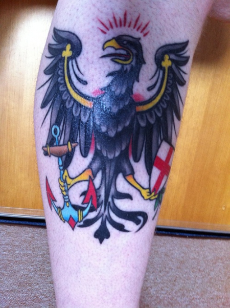 Zur Erinnerung: Das Tattoo zeigt den Wappen-Adler von Ostpreußen und das Wappen von England (von da stammen meine Großeltern) und einen Anker