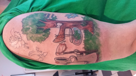 Finde dieses Motiv echt gut, obwohl ich überhaupt kein Fan von Comic Motiven bin, aber darum geht's ja nicht. Der Arm bekommt von mir auf jeden Fall viele Punkte, wenn er komplett bunt ist.