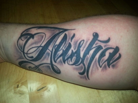 Das sind die Namen meiner Töchter, auf beiden Unterarmen. Meine ersten Tatoos..!