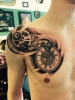 Eigentlich schön, mehr tiefe wäre tatsächlich angebracht. Was mir aber Sorgen bereitet, sind die unfertigen Zahnräder. Die plumpsen da so raus und momentan habe ich den Eindruck, als wenn der Tätowierer da ein Problem mit der Perspektive bekommt. Aber ist ja noch nicht fertig...