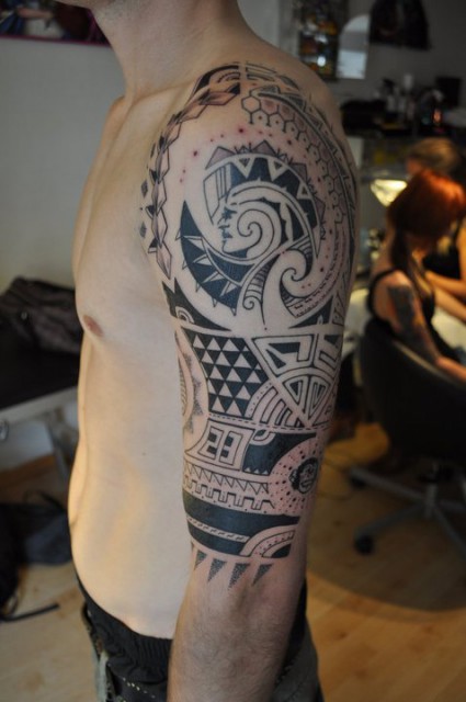 Ein Maori-Tattoo isses ja nicht. Vielleicht angelehnt an Maori. Bei sowas dann nen Schimpansen und/oder nen Schädel
