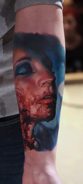 Das sieht doch voll heftig aus so ein großes buntes Frollein auf dem Unterarm. Sehr mutig.