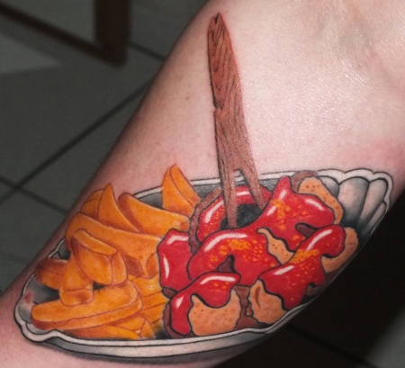 Diese "Feder" habe ich mir vor einer Woche bei meinem Tattooschatz Pille vom Tattoo-Café Leipzig abgeholt. Kam mit diversen Ideen, die er ganz wunderschön zusammengeführt und in seinem Stil umgesetzt hat. (Isn ganz feiner Oldschooler, der Junge.) Hat sich leider inzwischen furchtbar entzündet und heilt nun erst mal siffend vor sich hin, deshalb kann ich nur ein Foto anbieten, welches direkt nach dem Stechen geknipst wurde. Tausche es aber sofort aus, wenn der Soll-Zustand erreicht ist.