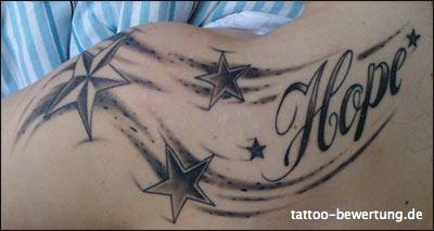 Das Tattoo entstand in 3 kleineren Sitzungen,ist mittlerweile noch größer geworden(+Sterne).Schmerzen waren auszuhalten,je nach Stelle.Gekostet hat es etwa 400€