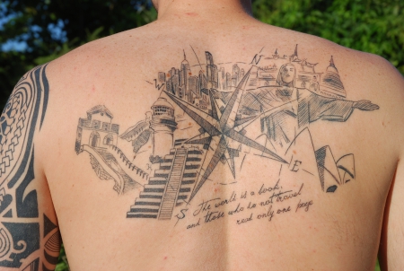 so hier mein Rücken Tattoo als Andenken an meine Reisen an besondere Orte