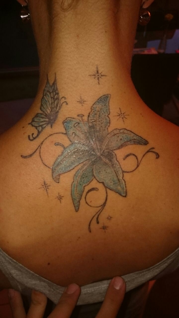 mein sternenschmetterling *stolzbin* Arbeitszeit: 1h 45 min Kosten 80 Eur ich wollte ein tattoo mit einem Schmetterling und sternen... da fand ich das am geeignetsten...