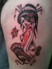Der Mund geht gar nicht, die Lippen sind zu weit geöffnet und die Zähne zu gelb. Die Vorlage ist nicht sonderlich gut, das stimmt, aber der Gesichtsausdruck des Tattoos ist furchtbar!