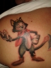 Stell nach der abheilphase ein neues photo rein hatte das ein wenig verrenkt selbst geschossen und die hand kommt bei meinem nächsten termin noch dazu das auf der vorlage passte nicht so gut und freihand war mir zu riskannt beine gehören so mag auf der aufnahme falsch rüberkommen wie gesagt stell dann wenns fertig is ein neues rein